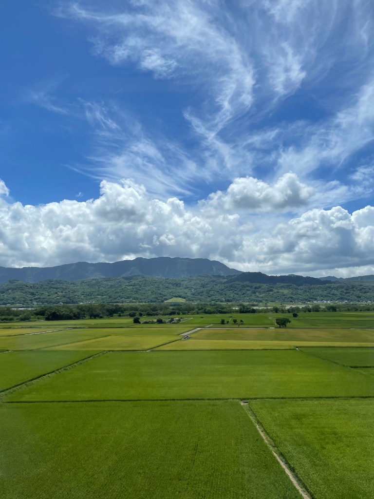 坐在往台東的普悠瑪上,搖搖晃晃,想著好久沒有一路向東,台九線路中間竟然多了分隔島。真的好久沒來,以前可是三個月就會來一次花蓮呢。今天的天氣很好,可能因為疫情,普悠瑪只坐了 4 成滿,我和旅伴盯著窗外翠綠的稻田與蓊鬱的高山捨不得眨眼,原來只要逃離都市,一切就如此放鬆。
