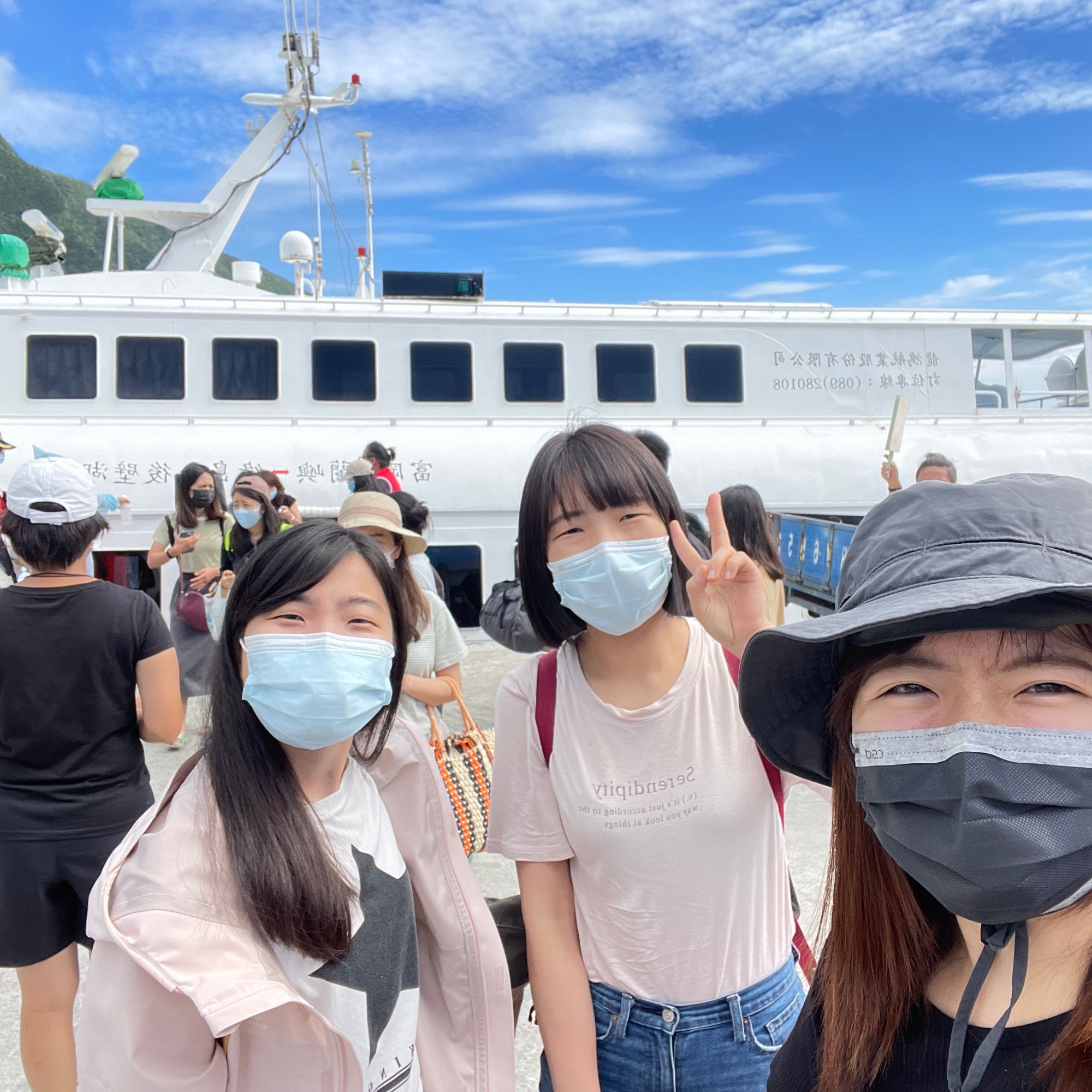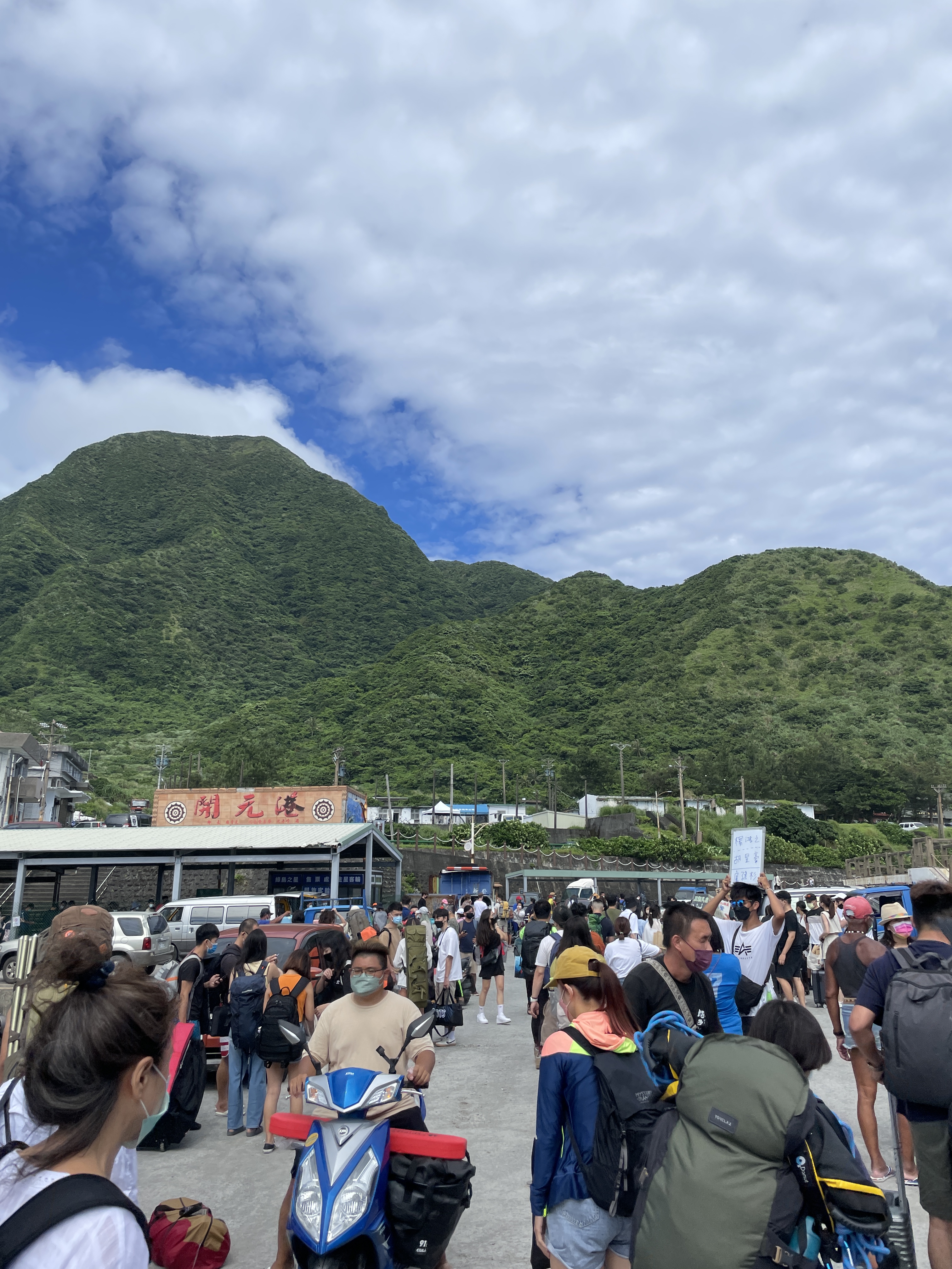 我們搭計程車抵達台東富岡漁港,這裡擠滿了許多也要搭船的遊客。幸好民宿闆娘已經幫我們事先訂好船票,稍微排隊一下、出示身分證就可取票。民宿闆娘十分貼心,出發前一天還傳給我們避免暈船的小秘訣,吃暈船藥、少吃午餐、坐船的中後方是重點。因此取完船票,我們立刻衝上船占位。