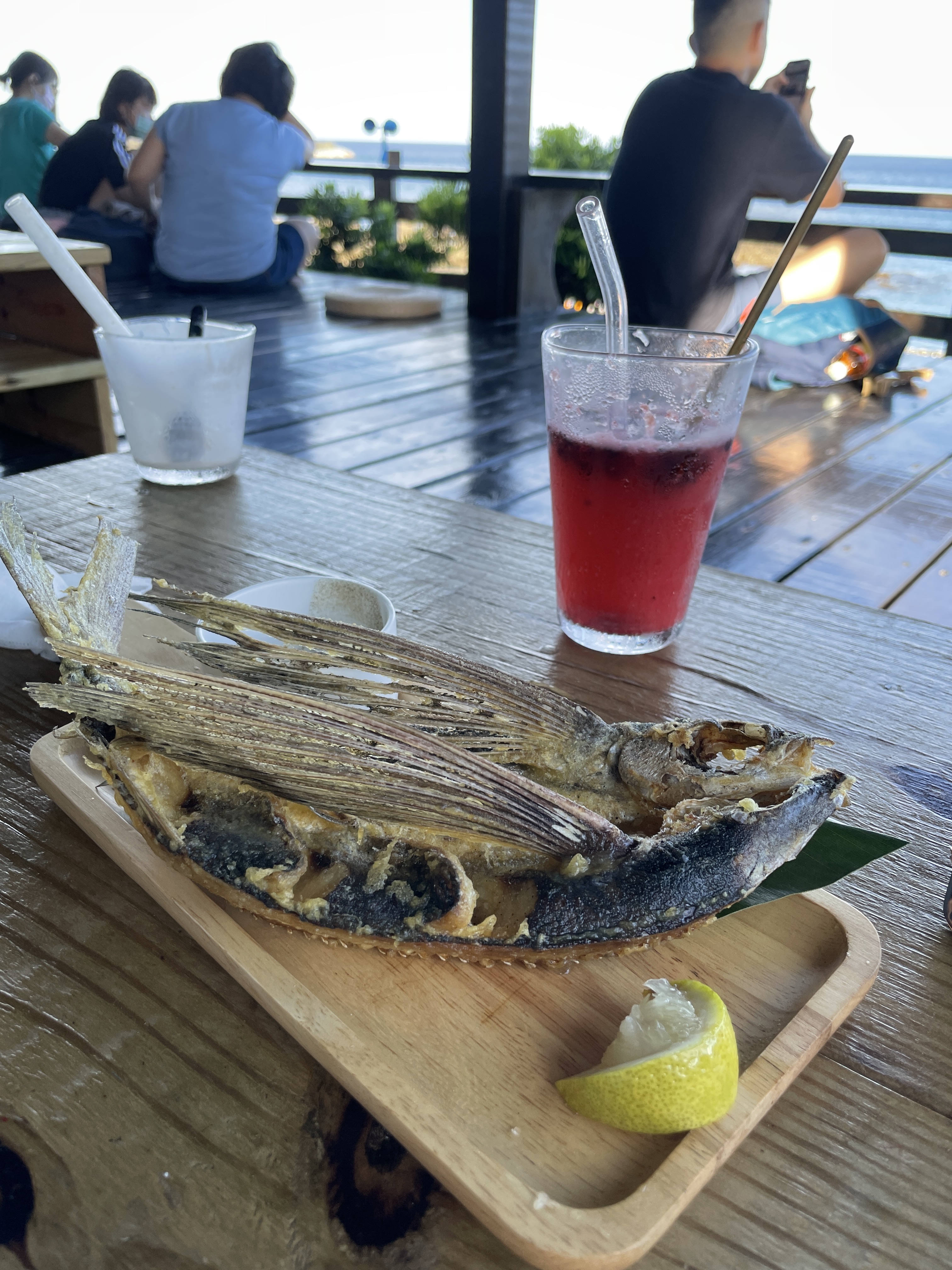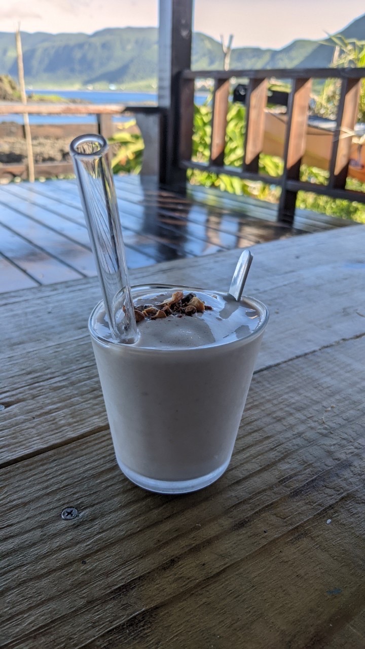 令人意外的是,餐點都非常非常好吃!可能因為食材新鮮,炸飛魚能夠吃到魚肉的多汁與鮮美,連飛魚翅膀都能像餅乾一樣送進嘴巴,只要簡單沾上胡椒鹽,不須刻意調味即非常美味。讓我們驚艷的還有芋頭奶奶(圖右),芋頭牛奶口感十分綿密,應該完全沒摻水下去打,口齒間還能吃到一點芋頭的顆粒口感,甜度也不會太甜,剛剛好。聽說這裡的芋頭都是水耕(不像台灣是土耕),因此吃起來更扎實、Q 彈。(延伸閱讀:蘭嶼芋頭知多少?來自海島穀倉,在地水芋Q彈扎實)