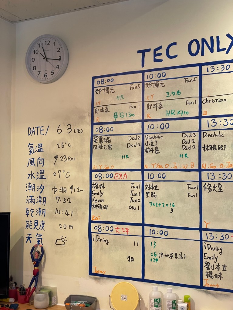 今天早上迎來本趟旅程的重頭戲 —— 深潛!這也是我人生第一次深潛。深潛體驗是民宿幫忙安排的,合作的是位於朗島部落、五爪貝民宿旁的 Tec Only 潛水教室。