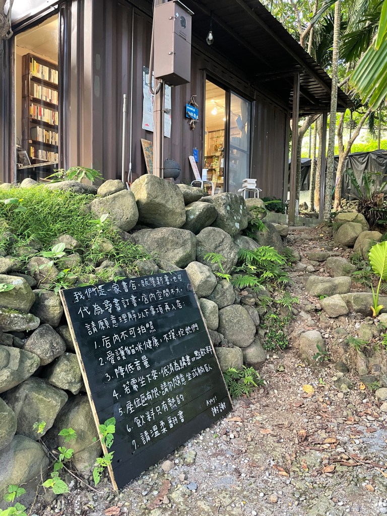 吃完雯雯,我們刻意停一家比較冷門的景點 —— 在海一方獨立書店,也是島上唯一一家書店。它的所在地比較隱密,記得要在蘭嶼國小前方的小路左轉,往上騎一小段,才能看到蓋在山坡上的小小書店。