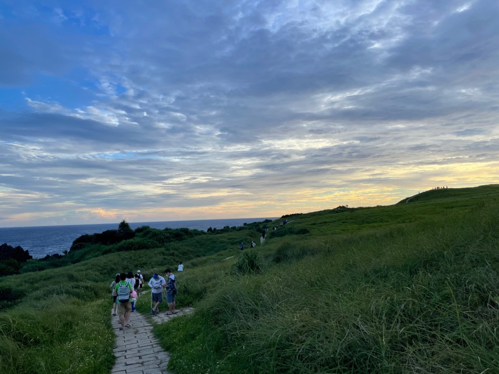 從馬路走到觀夕地點大約要 10 – 15 分鐘,幾乎是走在稜線上,有些路段左側就是面向海洋的懸涯,對膽小的我來說有點可怕,所以必須要認真注意腳下踩的每一步 🤪