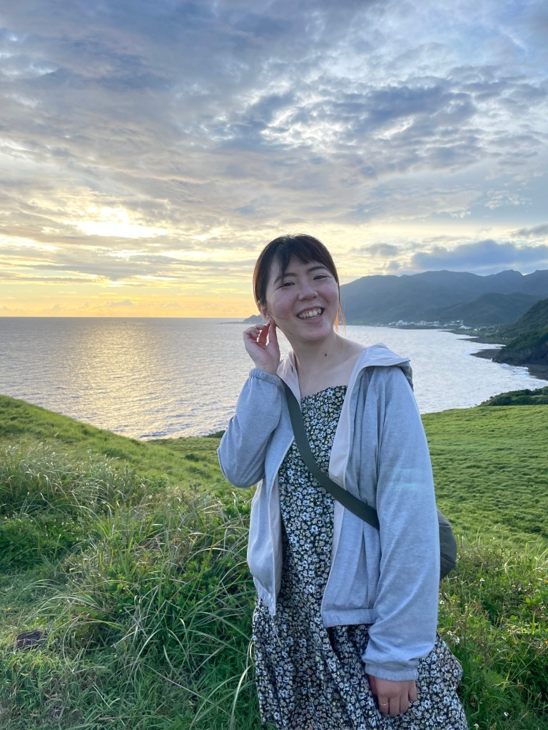 抵達青青草原時大約是五點半,離日落還有一個小時,我們在馬路上逛逛在地攤販。這裡有賣藍染的麻製背心、飾品、手作啤酒、飛魚酥等。我買了一件充滿海島風情,淺紫色、淺綠色交錯的背心裙,旅伴則買了一瓶桂花啤酒要當伴手禮。
