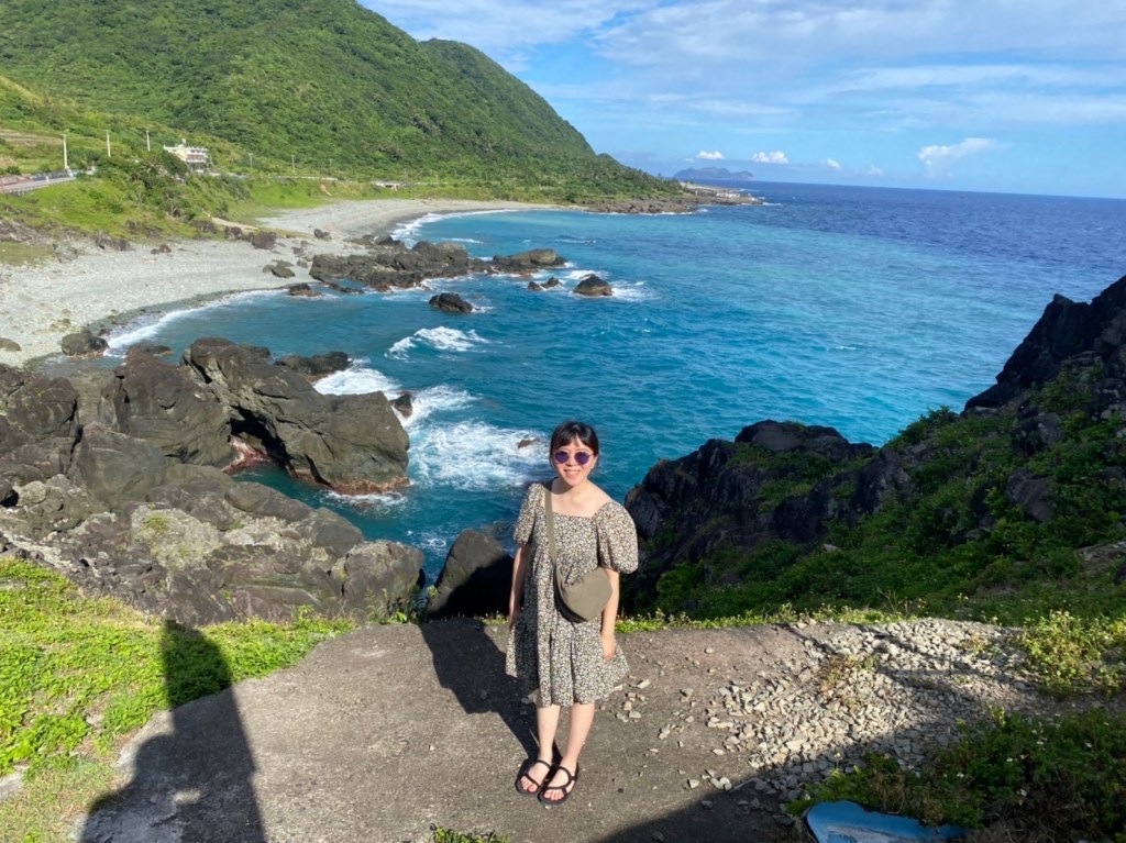 不過蜜月灣(估咩上寫蜜月灣、老闆說叫「愛情海」,又說當地人稱「屁股海」🤪)的風景真的不錯看,人只要站在虎頭坡上往下拍,淺藍色與深藍色的大海、白浪、秀山皆能一收眼底!