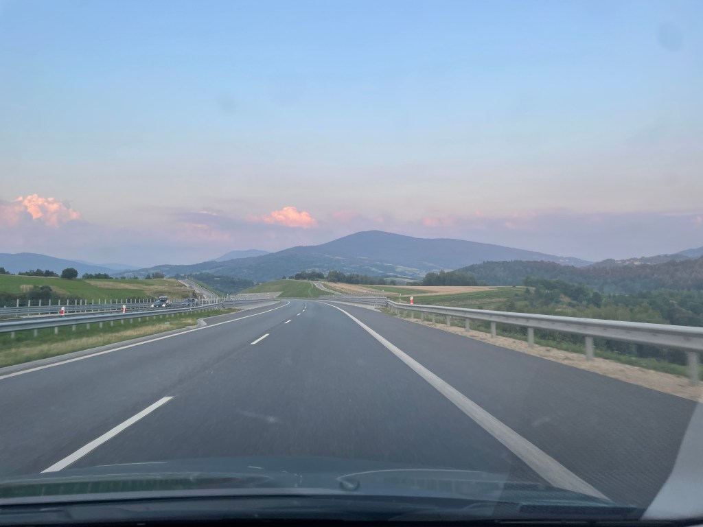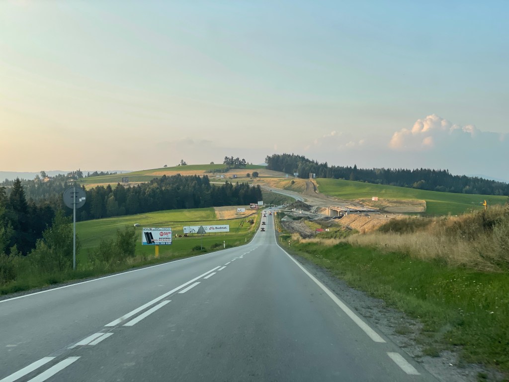 其實旅程結束後,我和劉先生都有共識,前三天的行程排太緊了 😢 第一天在機場吃完晚餐後,因為取車也發生一些小 trouble,最後開到 Zakopane 已經晚上 10:30。真的要跟劉先生說聲辛苦了,在晚上開完全不熟的路,值得給很多很多掌聲!我們也發現波蘭有一種很特別的路,介於高速公路與省道中間,也些路段是可以開快車的,但開到市區附近後又設有些許斑馬線讓行人可以過馬路,滿有意思的。(後來聽說歐洲許多國家的高速公路長這樣,例如德國!)