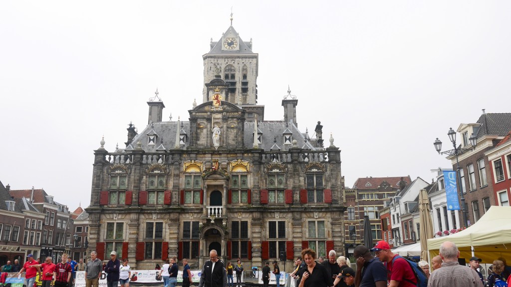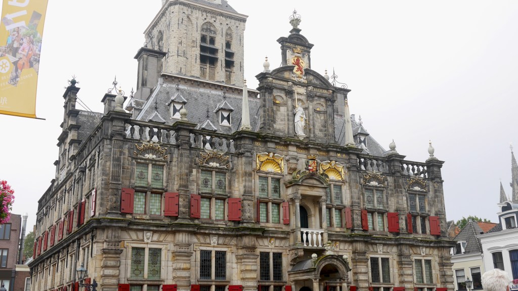 Delft 市政廳的建築風格也十分華麗,上面還有一些黃金雕塑點綴,整體風格讓我聯想到比利時的建築,跟典型的荷蘭建築比起來,更加重視裝飾與美感。