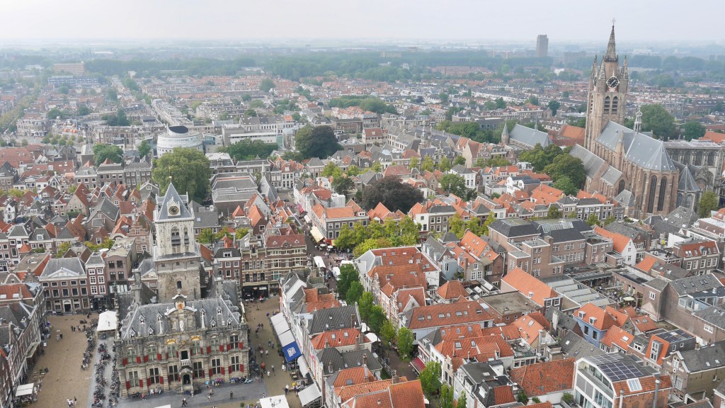 荷蘭境內,似乎沒有很多地方可以登高望遠,因此這樣的景緻確實令人難忘。Delft 的房子長相十分整齊,多使用橘色或灰色的屋頂,錯綜中帶有秩序,令我不禁想,我們會覺得這樣的景色很美,是不是因為市容的長相十分統一呢?