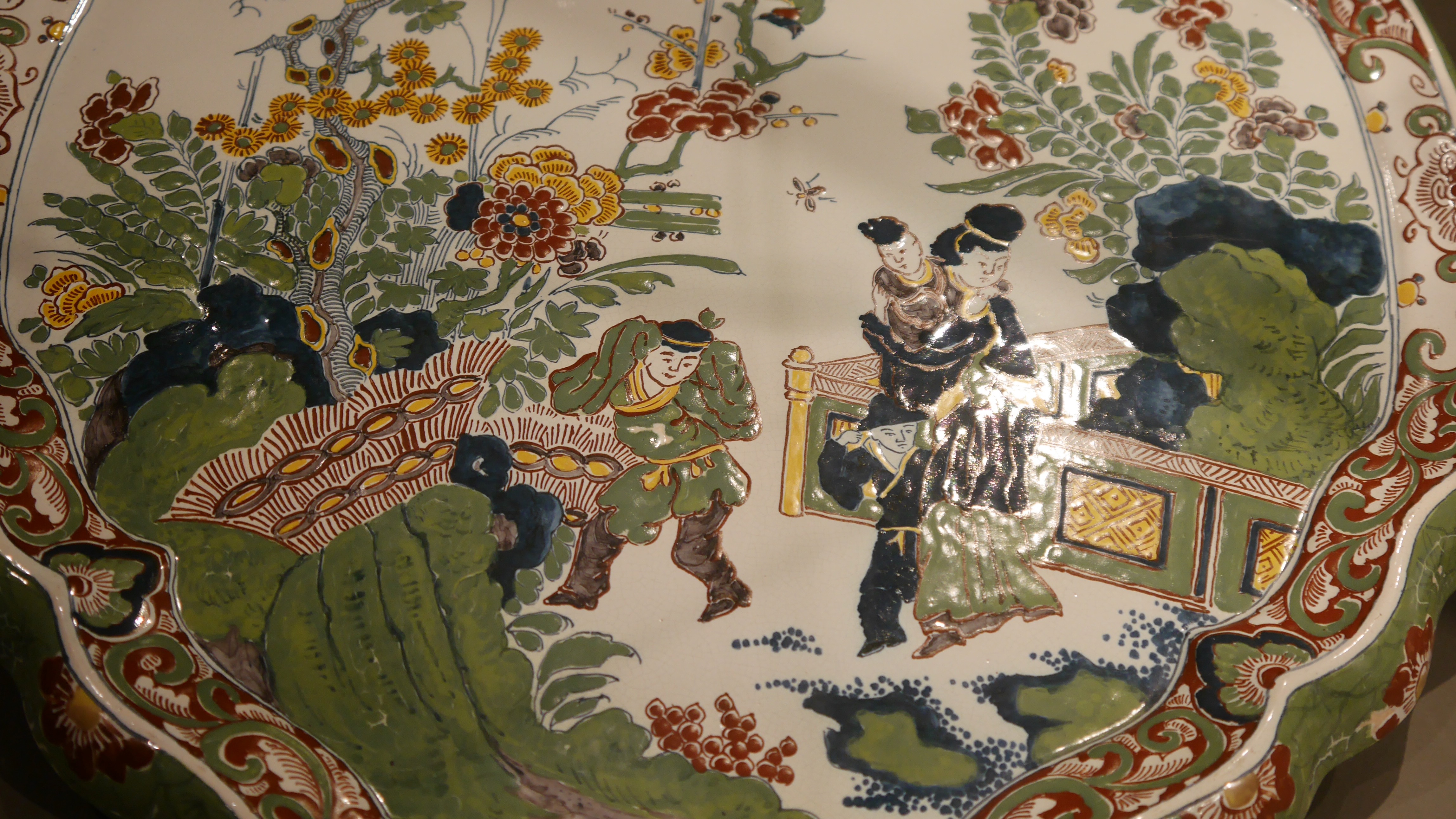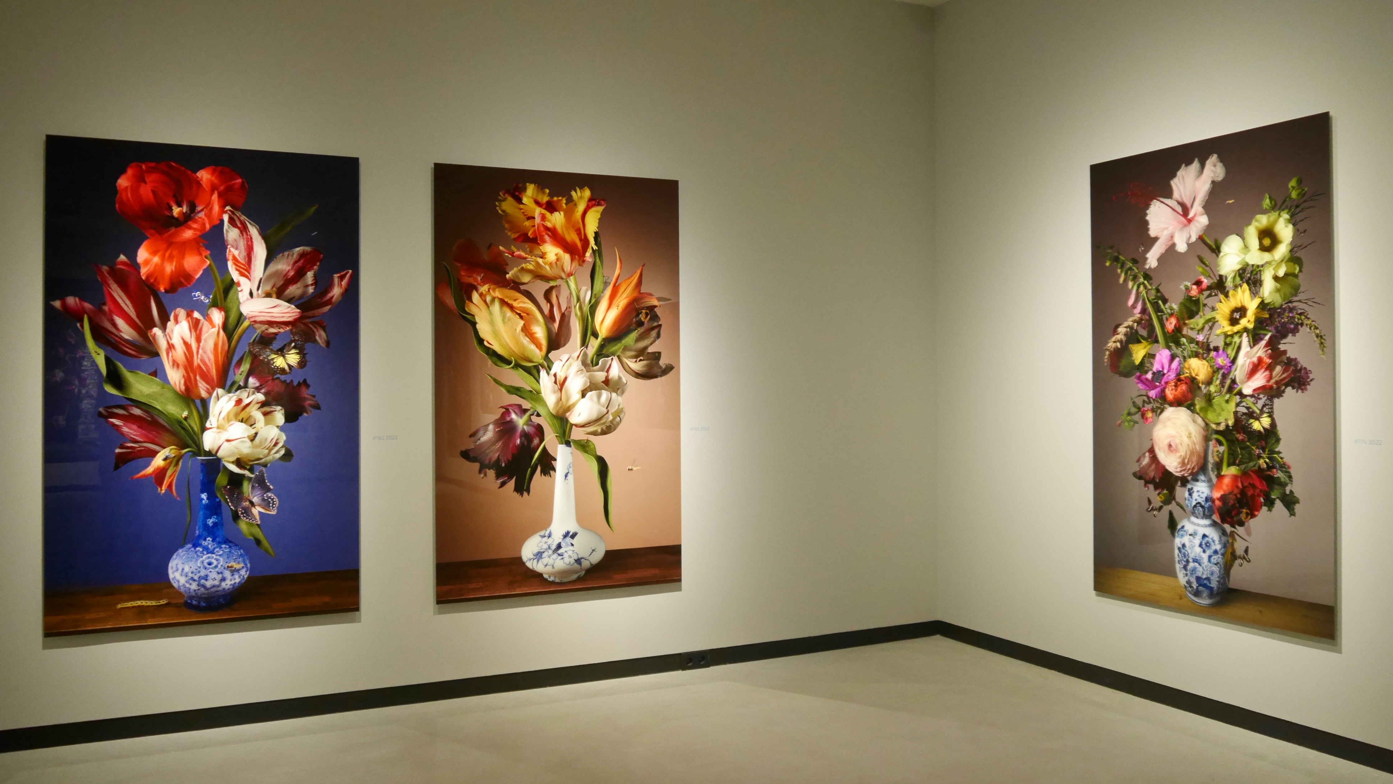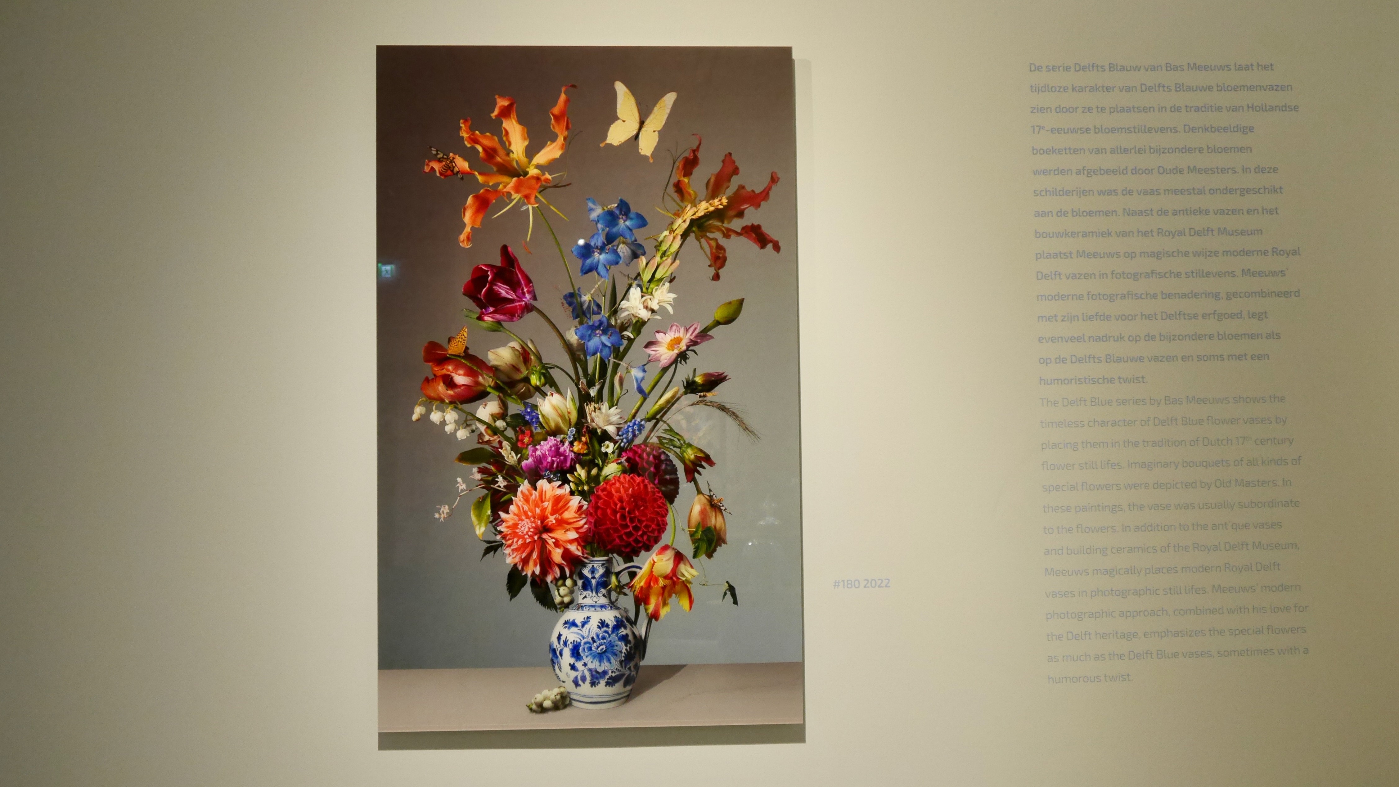 我去參觀的時候,剛好趕上特展 Bloemen in Blauw (Flower in Blue)展出的最後一個週末。這個展覽非常特別,作品都是 Bas Meeuws 這位攝影師的「創作」,他先用攝影機為 Royal Delft 裡的瓷器作品與其他花材分別拍照,再用合成軟體將瓷器與花材合成一張張新作品,且模仿 17 世紀畫家當時描繪靜物畫的風格,再現瓷器與花朵們之間的關係。每幅作品中,都能感受到花朵與昆蟲們源源不絕的生命力,與瓷器形成很特別的互動關係。